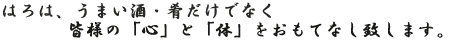 お客様が日々、当たり前に口にする「水」。 当たり前だからこそ"はろ"ではそこにこだわり、 お客様のご健康を考えて、活性酸素を消し体によい「還元水」を使用しております。 何気ない事こそこだわり抜く。それが"はろ"の原点です。